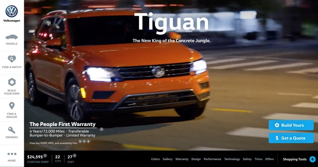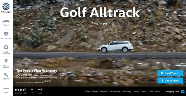 Deutsch creates almost all of the content on VW.com, and the site is developed and coded in-house at Deutsch as well. Here are a few homepage and model page mastheads that we've cut together and colored/finished.